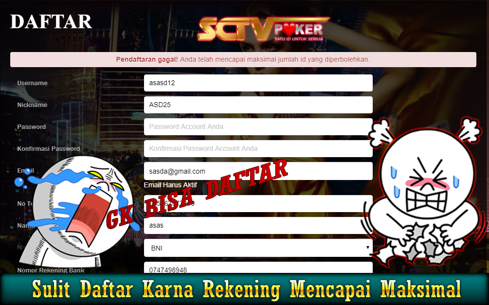 Pendaftaran Gagal SCTVPOKER Solusinya Pendaftaran gagal SCTVPOKER Solusinya yang bisa membantu anda untuk tetap bisa bermain poker online dengan nyaman…